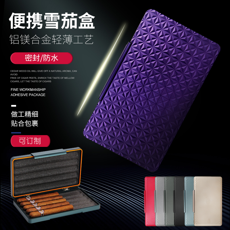 包邮 Lafuli雪茄盒 轻薄铝制雪茄保湿盒 便携旅行雪茄加湿储存盒